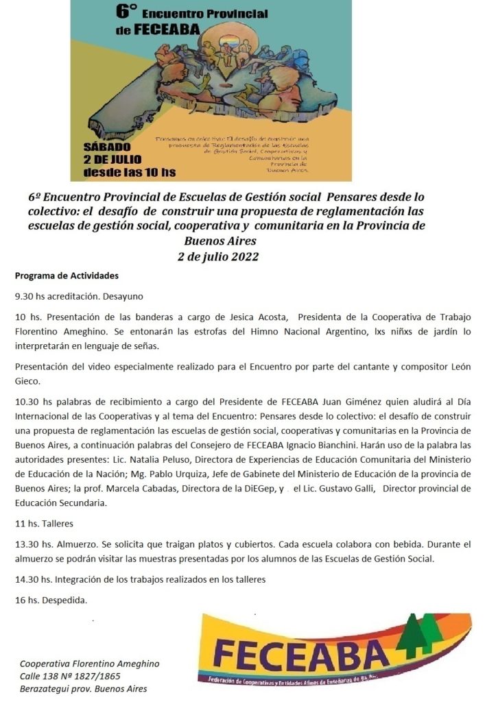 6º Encuentro provincial de Escuelas de Gestión Social, Cooperativas y Comunitarias. Algunas imágenes!!julio 4, 2022 Páginas 1 2